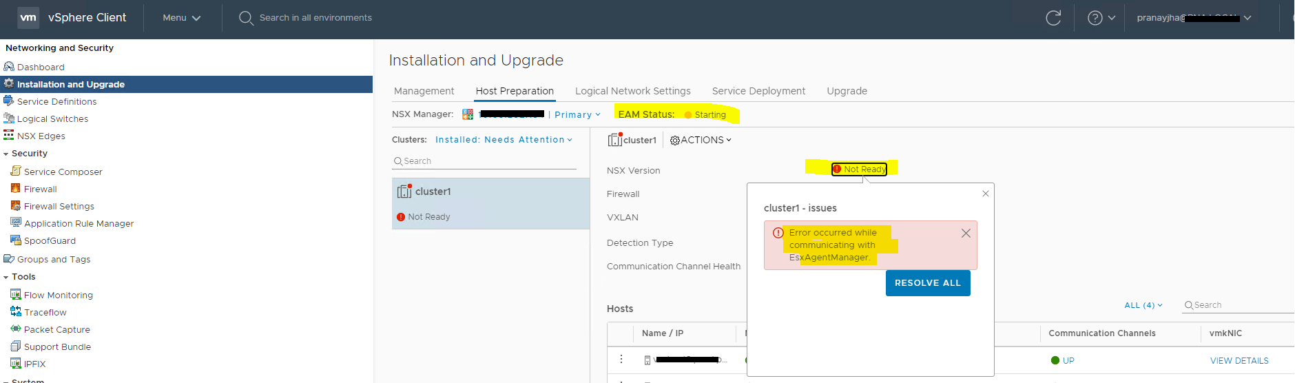NSX-V upgrade fails with the error – Error occurred while communicating with Esx…