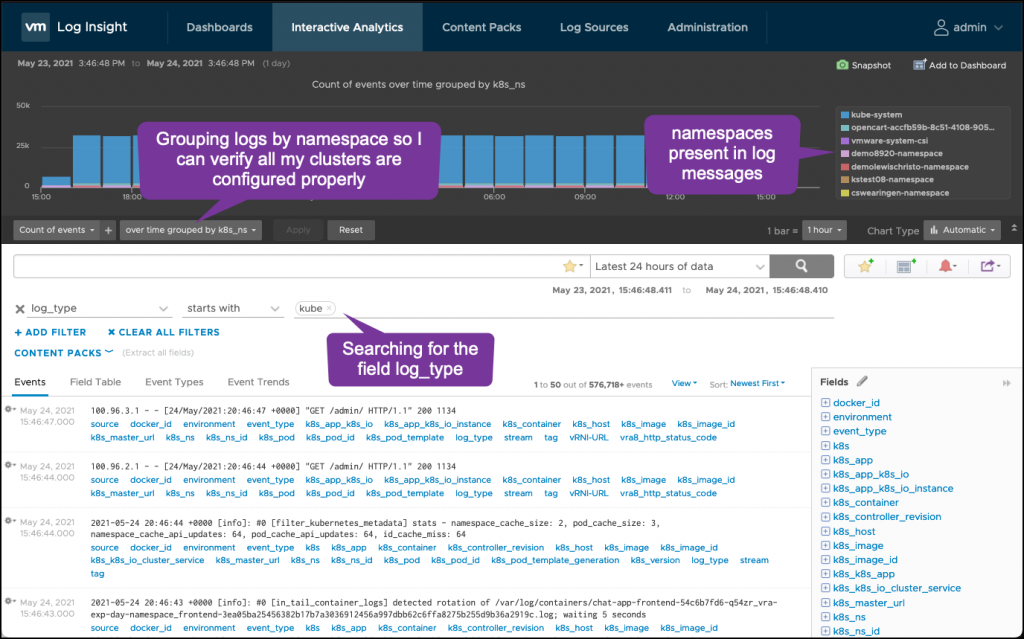 With the release of vRealize Log Insight 8.4, we added Log Sources which provides in-product documentation on how to configure container log sources to send logs to Log Insight. Some people have reached out with some questions around configuring logging for Tanzu Kubernetes Grid clusters, so I wanted to write a quick blog to run … Continued The post Monitoring Tanzu Kubernetes Grid (TKG) Clusters Using vRealize Log Insight appeared first on VMware Cloud Management.