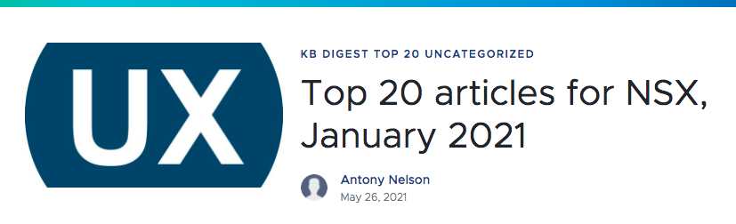 Check out the Top 20 articles for NSX, January 2021 – from VMware Support Insider.