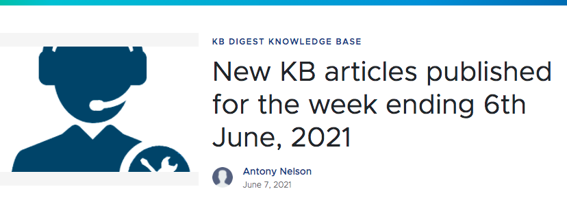 Check out the New KB articles published for the week ending 6th June, 2021 – from VMware Support Insider.