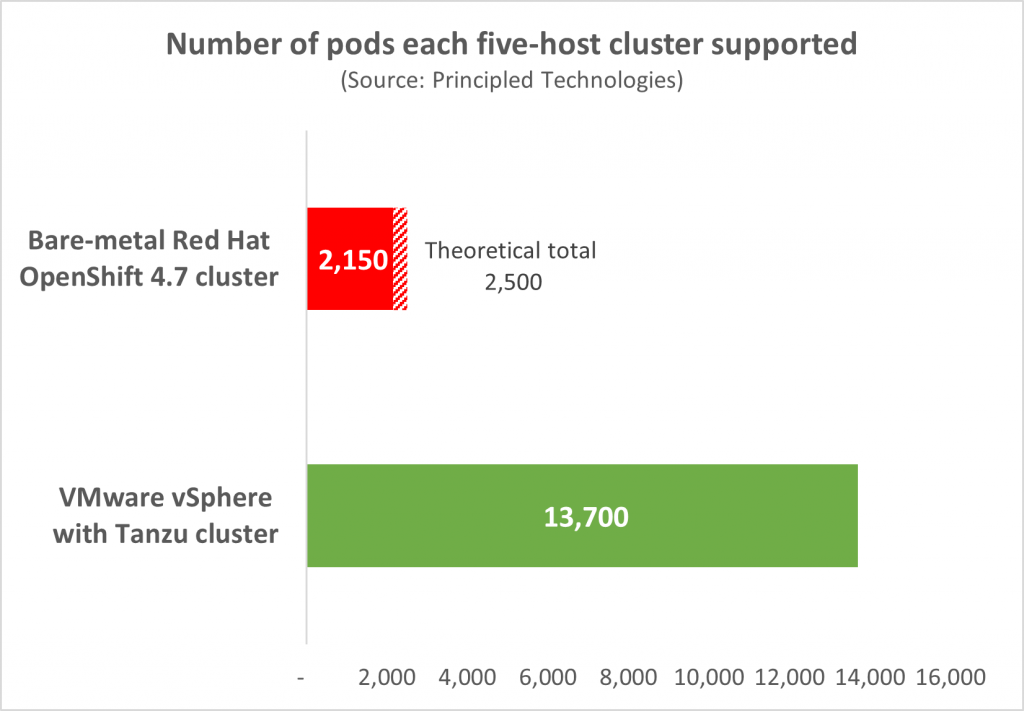 vSphere with Tanzu Supports 6.3 Times More Container Pods than Bare Metal