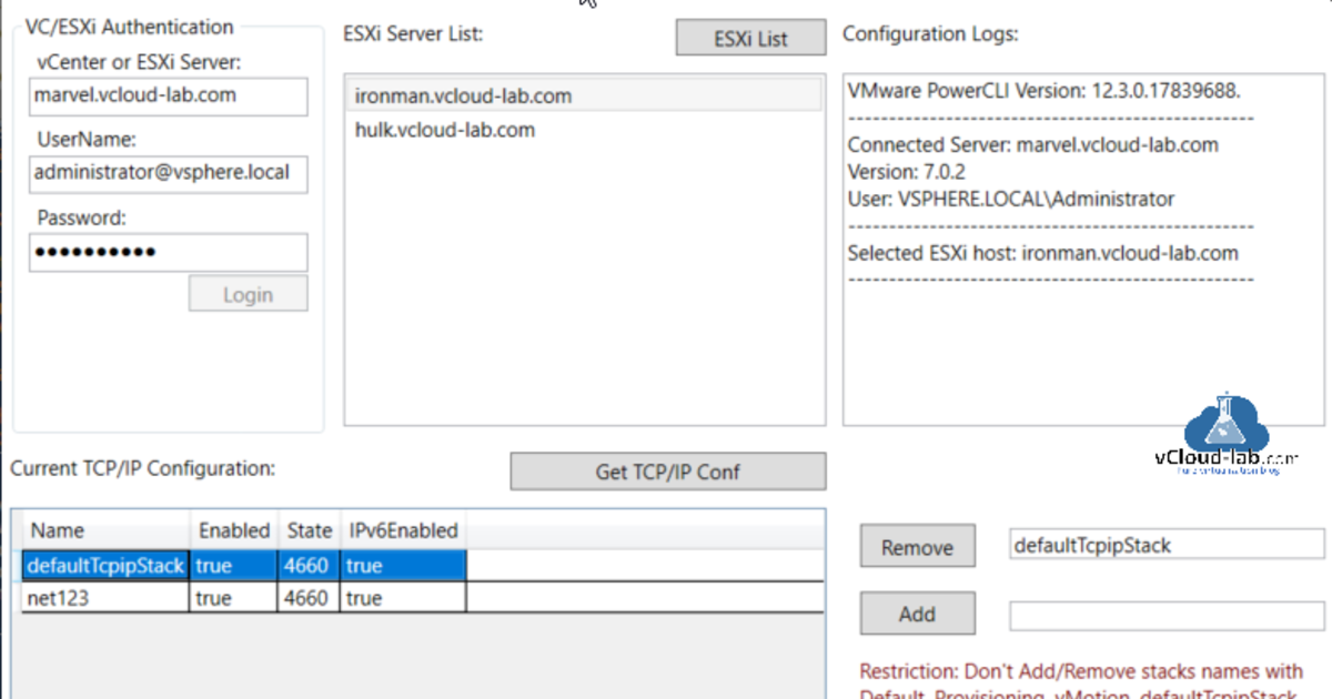 Create a custom TCPIP stack on ESXi server - VMware PowerCLI GUICreate a custom TCPIP stack on ESXi server -...While working with my VMware team we had to audit and create or delete TCP/IP network stack, Here on the ESXi server under Networking >> TCP/IP Configuration you cannot create new custom stack using vSphere client.... Continue Reading →