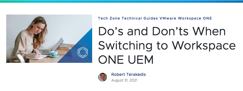 Do’s and Don’ts When Switching to Workspace ONE UEMDo’s and Don’ts When Switching to Workspace ONE...This article, Do’s and Don’ts When Switching to Workspace ONE UEM, was originally published at the VMware Digital Workspace Tech Zone Blog. So, you’re new to VMware Workspace ONE® and have several devices currently managed by another MDM provider. First... Continue Reading →