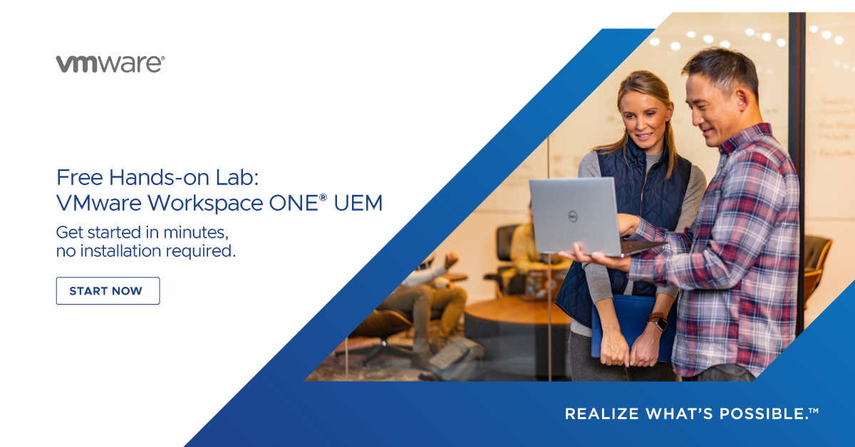VMware Workspace ONE UEM - Getting Started Hands-on LabVMware Workspace ONE UEM - Getting Started...Evaluate the full technical capabilities of VMware Workspace ONE® Unified Endpoint Management (UEM) in a free hands-on lab. Up and running in your browser in minutes, it couldn’t be easier to get started now.VMware Social Media Advocacy