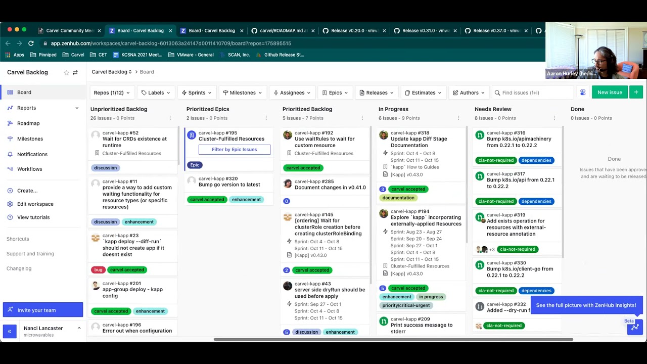 Carvel Community Meeting – October 14, 2021 We meet every Thursday at 10:30am PT. We’d love for you to join us live! The team went over the latest release from the Carvel tool suite and had lengthy discussion on speeding up docs PRs, as well as other topics. Full notes here: https://hackmd.io/F7g3RT2hR3OcIh-Iznk2hw?both#October-14-2021-Agenda