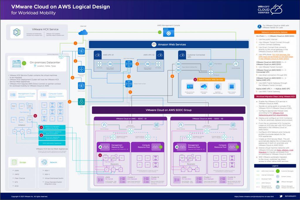 Introducing VMware Cloud on AWS Logical Design Poster for Workload MobilityIntroducing VMware Cloud on AWS Logical Design...VMware Cloud on AWS is an integrated hybrid cloud service that enables organizations to migrate or extend their on-premises vSphere environments rapidly. VMware Cloud on AWS includes VMware HCX, a solution that streamlines workload migration across data centers and... Continue Reading →