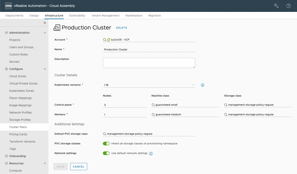 On-demand Workload Clusters on vSphere with Tanzu using Cloud Assembly