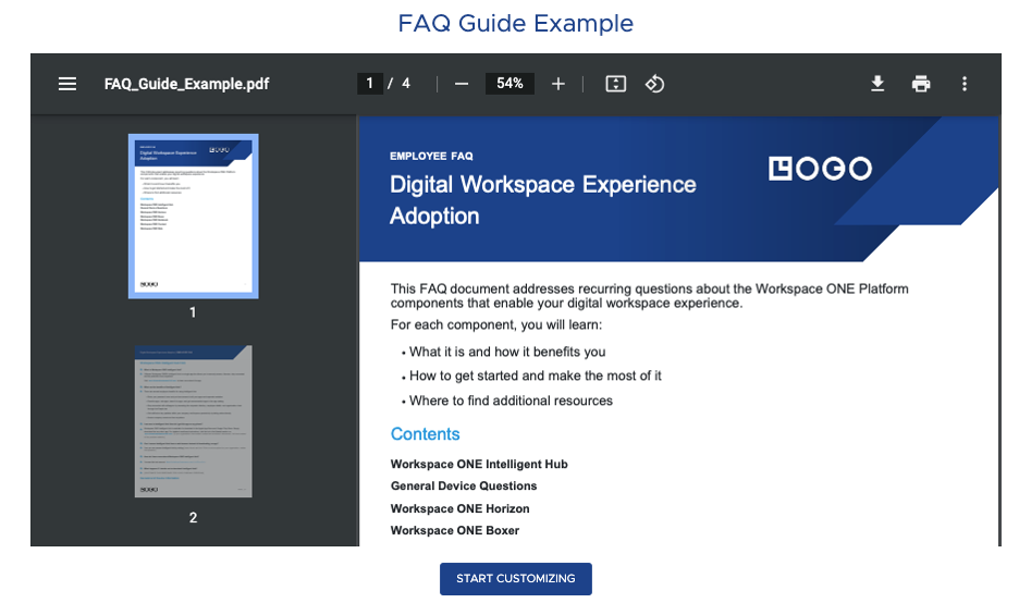 Use the Workspace ONE Adoption Kit Wizard to create a customized FAQ for your en…