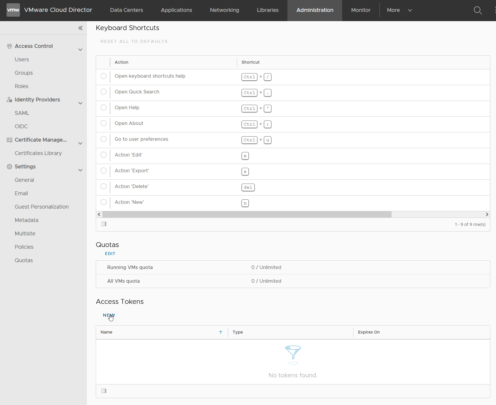 VMware Cloud Director 10.3.1 introduced API Tokens. This allows a user to generate API tokens for programmatic access to VCD. It works for both, provider, and tenant users. An automation script or 3rd-party solution can then use the API token to make API requests to Cloud Director on behalf of the user. These steps are … Continued The post Cloud Director API Token appeared first on VMware Cloud Provider Blog.