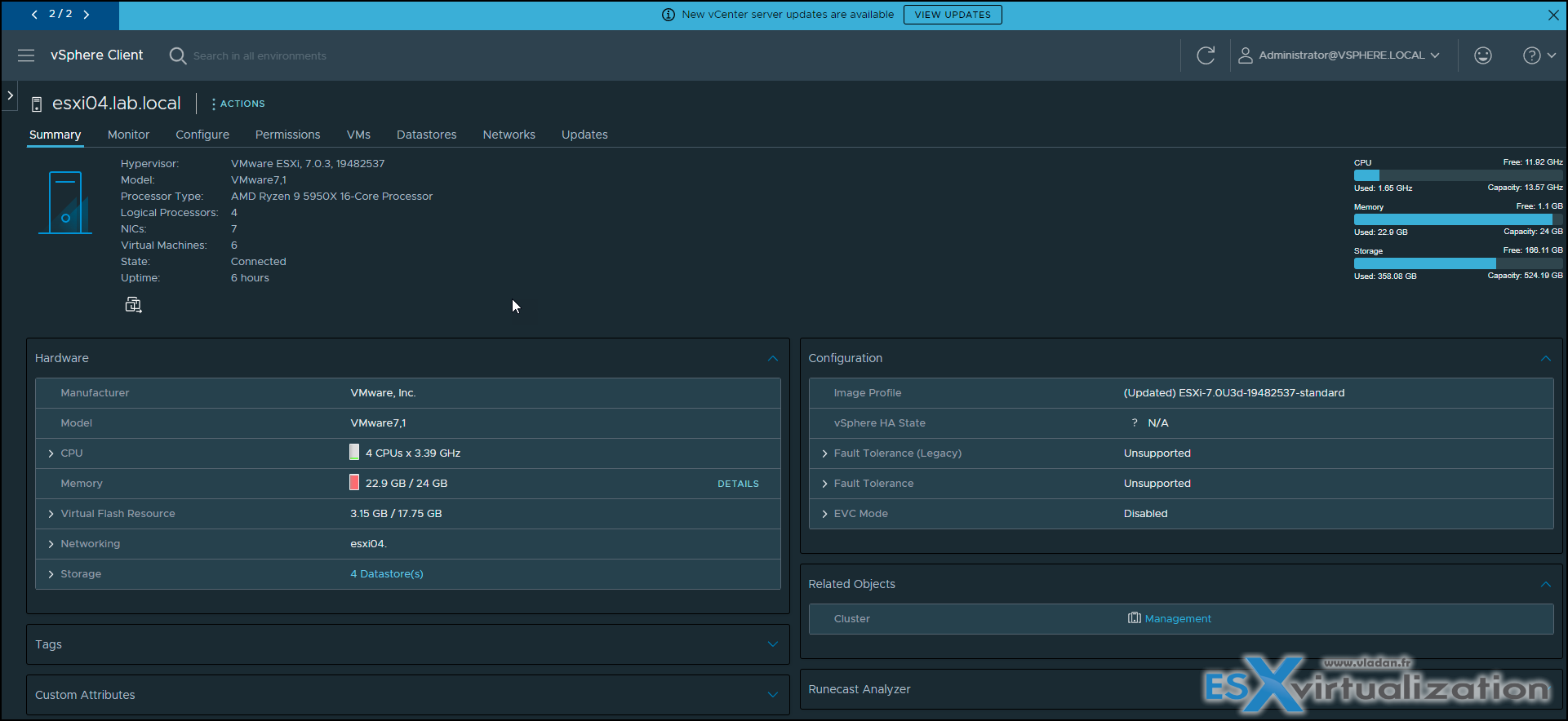 There is a new update for VMware vCenter Server 7.0 U3e, as you might have already spotted on your vSphere installation while connected via your vSphere client (this notification is by default). This new update of VCSA 7.0 U3e is a maintenance update that brings patches for vSphere with Tanzu.