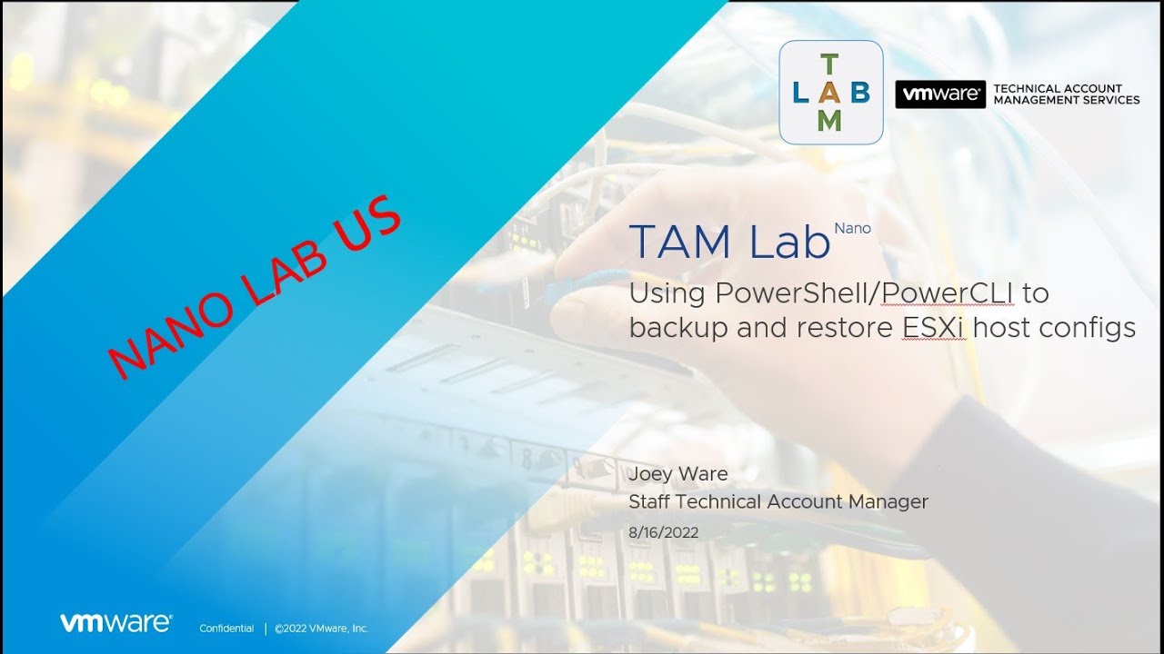 TAM Lab – Nano – Backup/Restore ESXi Config