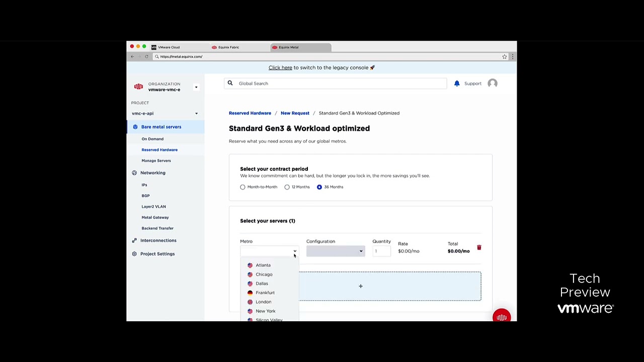 Tech Preview VMware Cloud on Equinix Metal