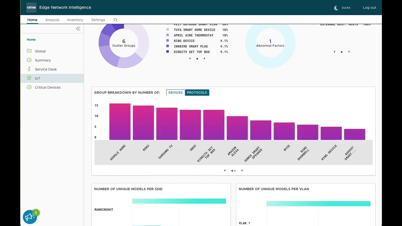 Explore the functionality of the Edge Intelligence platform as it provides in-depth analysis of IOT devices, emphasizing a security-focused perspective. Learn how the platform identifies devices that behave differently than usual or uniquely among similar devices, with features such as automatic device classification, anomaly detection, traffic monitoring, and detailed device and group analyses. Visit https://sase.vmware.com/ for more information.