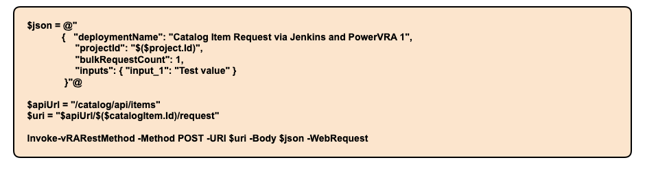 Aria Automation catalog item request with Jenkins and PowerVRA