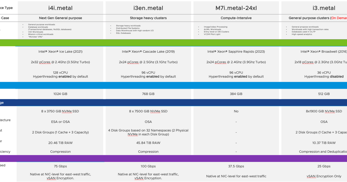 UPDATE: VMware Cloud on AWS (VMC/A) Host Types Comparison