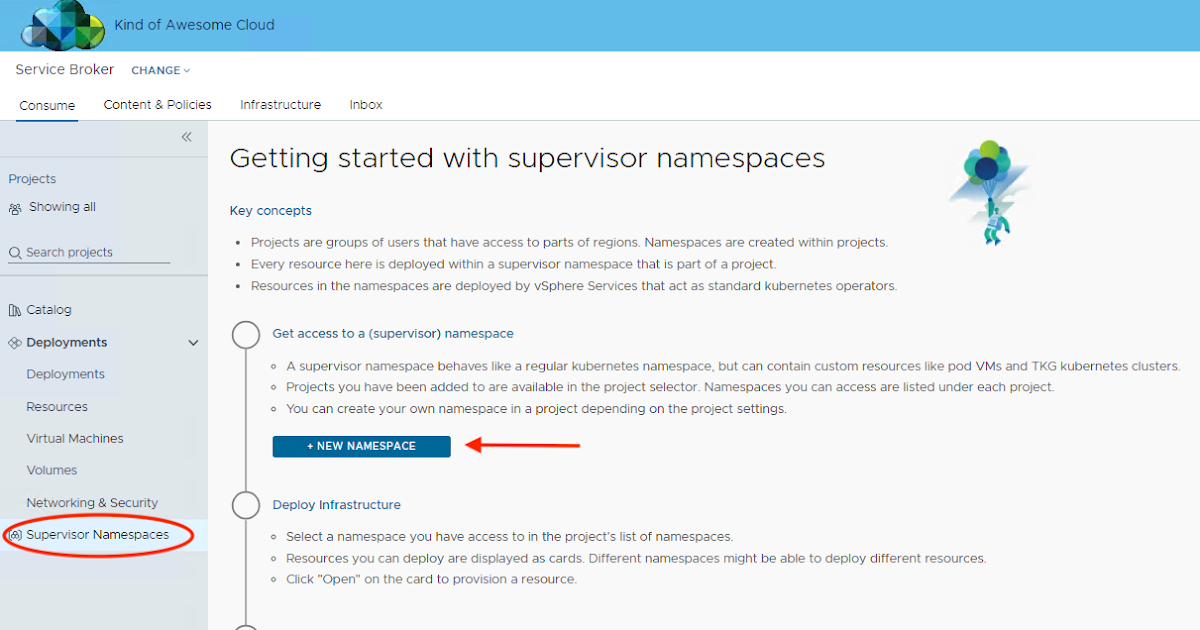 Cloud Consumption Interface – Supervisor Namespace