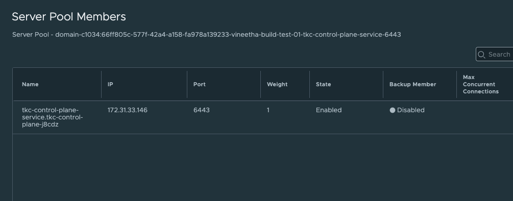 Troubleshooting inaccessible TKC with server pool members missing in the Load Balancer Virtual Server.