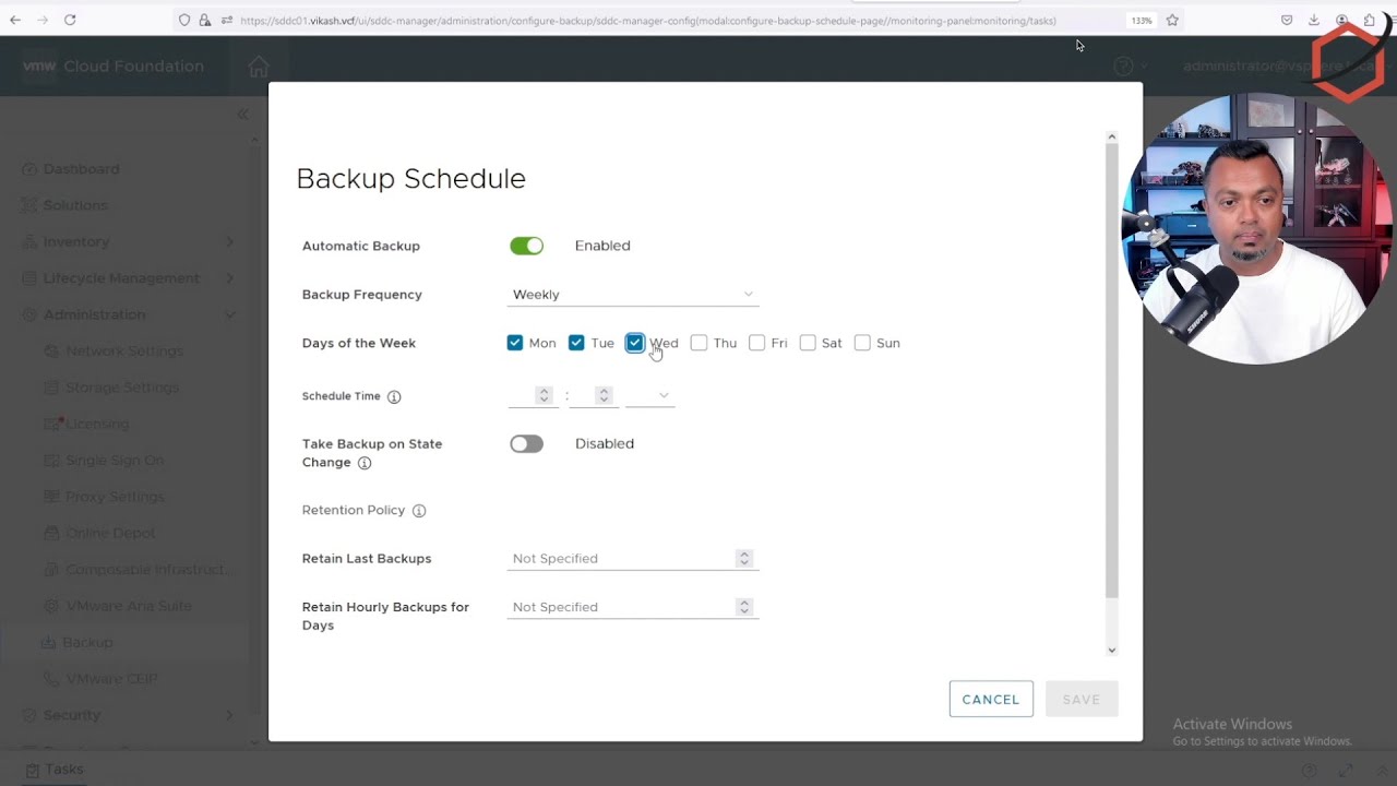 In this video, I will show you how to set up an automatic configuration backup schedule for your VMware VCF 5 platform using the built-in backup option in the SDDC manager.