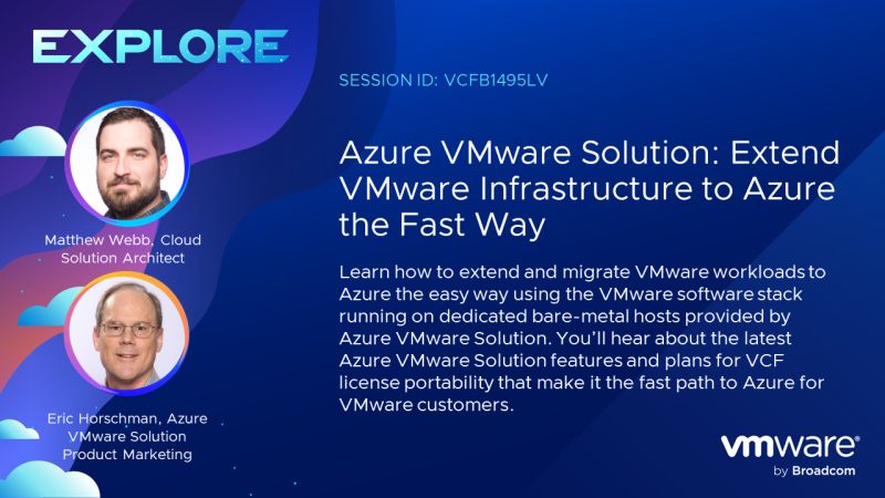 Join me and Broadcom Cloud Solution Architect Matthew Webb at VMware Explore 2024 Las Vegas for our session: „Azure VMware Solution: Extend VMware Infrastructure to Azure the Fast Way“.