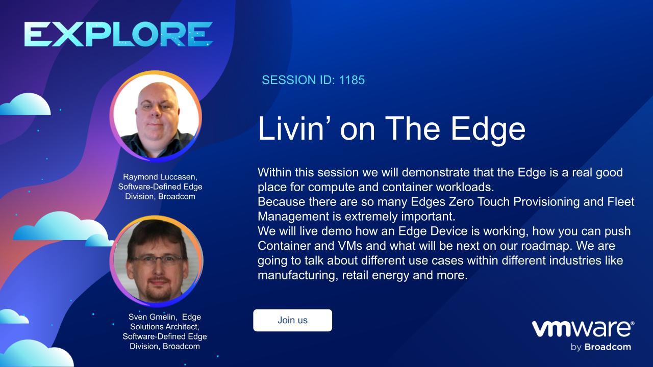 Within this session we will demonstrate that the Edge is a real good place for compute and container workloads. Because there are so many Edges Zero Touch Provisioning and Fleet Management is extremely important. We will live demo how […]