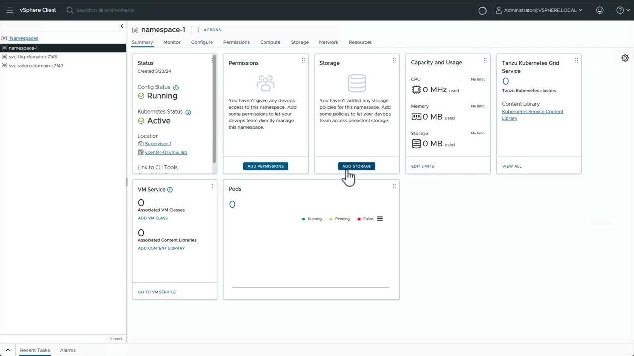 Creating a vSphere Namespace Creating a vSphere Namespace Creating a vSphere Namespace How to create and configure a vSphere Namespace Broadcom Social Media Advocacy Teilen mit: Klicke, um auf X zu teilen (Wird in neuem Fenster geöffnet) X Klick, um auf Facebook zu teilen (Wird in neuem Fenster geöffnet) Facebook Gefällt mir Wird geladen … Ähnliche Beiträge Hinterlasse einen Kommentar Antwort abbrechen Δ