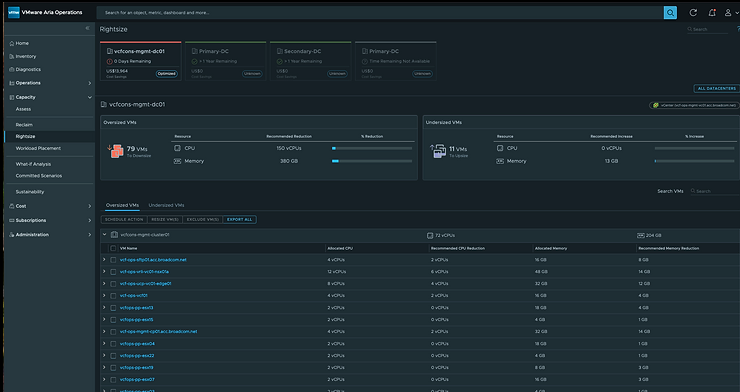 One of the main pillars of Aria Operations is Capacity Planning: Assesssing, Reclamation, and Rightsizing. Rightsizing gives us visibility into capacity available to be reclaimed, should we rightsize our VMs. It presents that data at the Datacenter and Cluster levels via the UI, but it’s also […]
