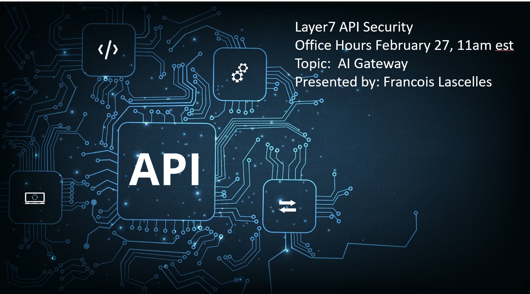 In February API Layer7 Security February Office Hours Francois Lascelles will be presenting on AI Gateway