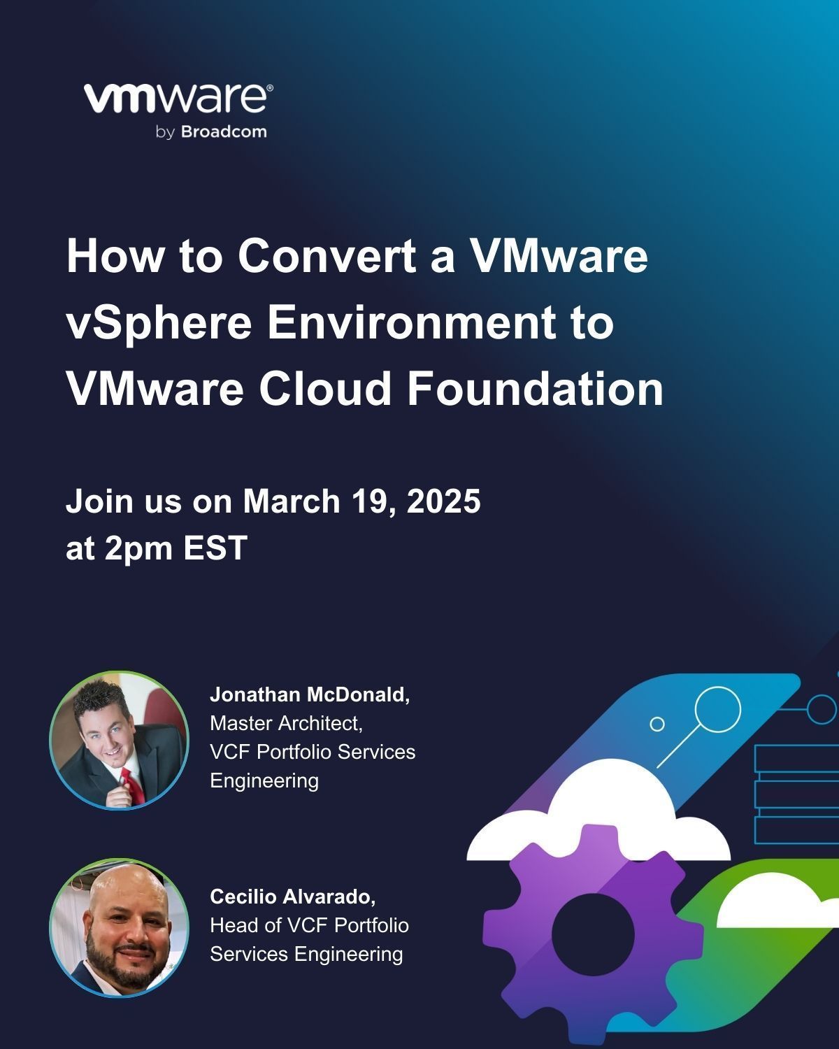 You won’t want to miss this: One week left until Jonathan McDonald and Cecilio Alvarado walk through a demo on how to convert a VMware vSphere environment to VMware Cloud Foundation. 📅 Join us on March 19 at 11:00 AM PT for a hands-on demo and expert insights. Reserve your spot today!