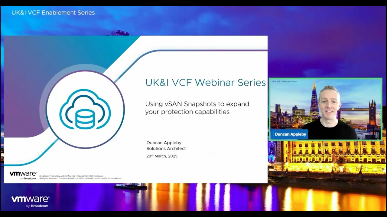 Data protection strategies often include snapshots in some form or another. Learn how vSAN ESA snapshots can play an integral part of a data protection strategy, as well as augment formal data protection practices to make recovery operations more convenient. The UK and Ireland VCF Specialist Solution Architect team would like to invite you to this webinar series focused on various software components of the VCF platform. Being a series, you are encouraged to attend each of the sessions to provide you with a deeper technical understanding of what VCF has to offer and how all the component parts work together to provide a robust and highly scalable private cloud platform. The sessions will focus on Networking, Storage, Automation and…Read More