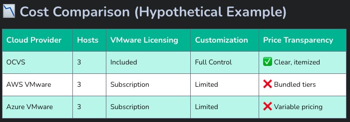 As VMware’s licensing and packaging evolves under Broadcom, many customers are evaluating cloud-based alternatives. If you’re considering Oracle Cloud VMware Solution (OCVS), you’re probably wondering: What’s included, and how much does it cost?