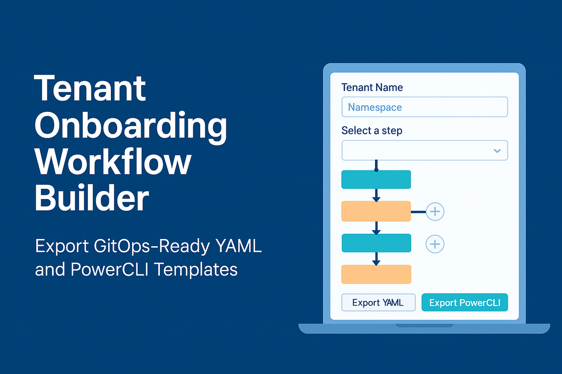 Accelerate tenant onboarding in VMware Cloud Foundation with this drag-and-drop workflow builder. Export GitOps-ready YAML or PowerCLI templates and align with RBAC governance strategies.