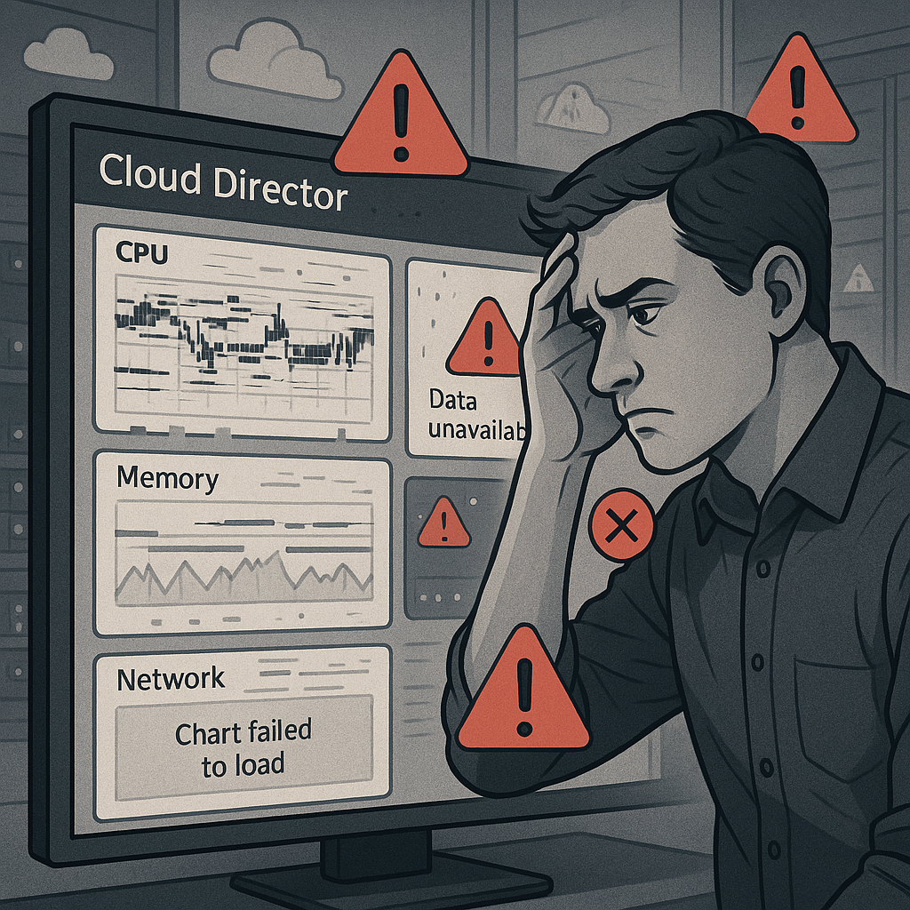 Virtual machine metrics charts in VMware Cloud Director 10.6.1 display all values along the y-axis. Certain data sets exceed the ability of the chart to display the data correctly. Issue caused due to a Bug in the code and this bug is fixed in the 10.6.1.1 release.