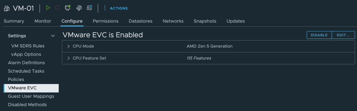 Quick Tip – Auditing configured Per-VM EVC (Enhanced vMotion Compatibility)