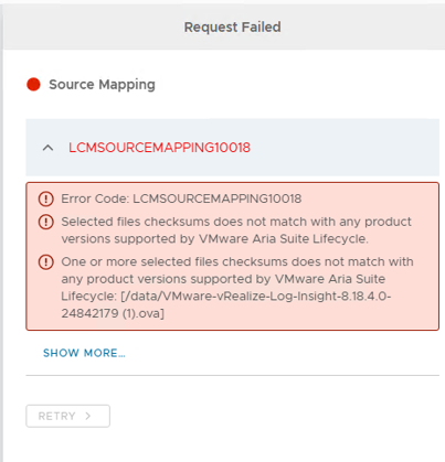 Unable to upload / map binaries to VMware Aria Suite Lifecycle – Error _…