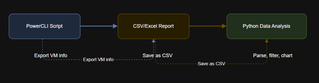 Learn how to export VMware data to CSV and Excel using PowerCLI and Python. This article demonstrates scripting VM inventory exports and visualizing your data with practical Python examples for dashboards and analysis.
