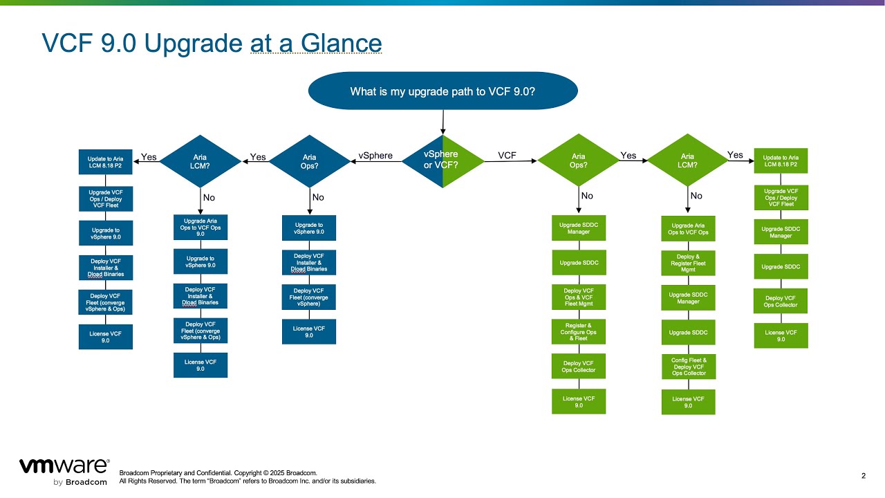 An comprehensive overview of the common upgrade paths for upgrading from vSphere 8.x and VCF 5.x to VCF 9.0.