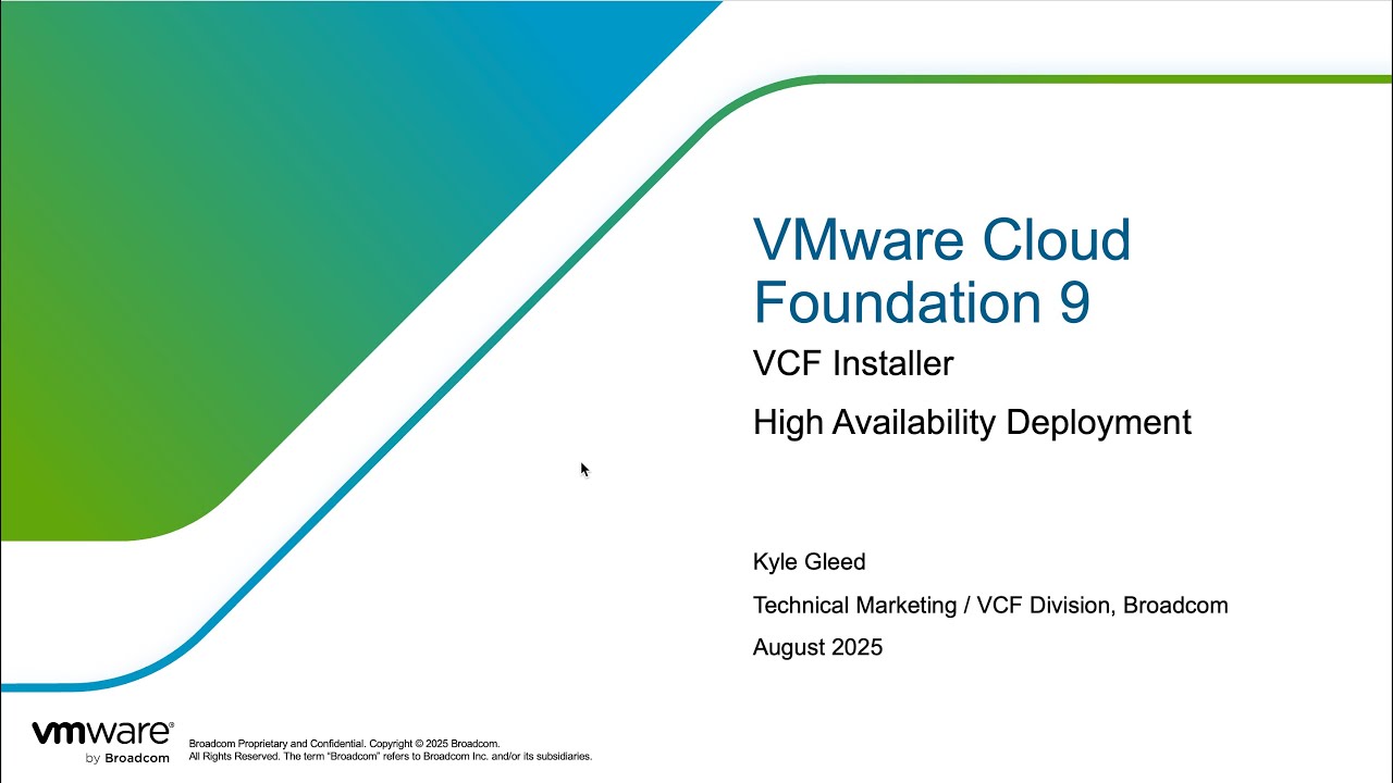 This video provides an overview on how to use the new VCF 9.0 Installer to deploy a new VCF Fleet using the high availability deployment model.
