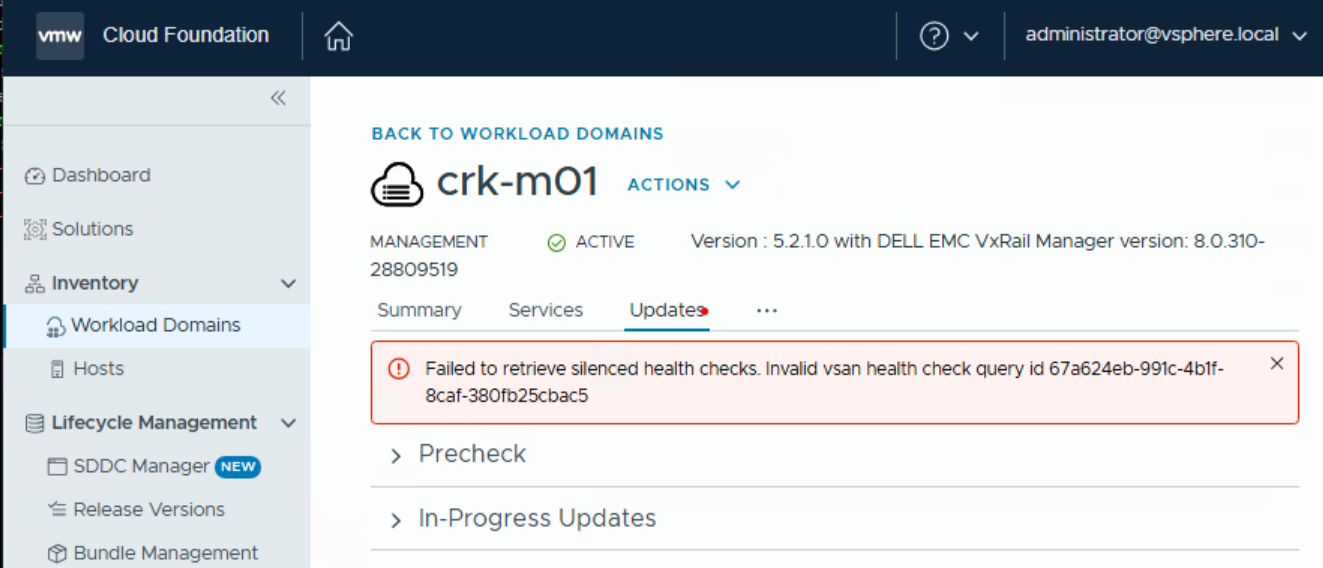 VCF 5.2.1 On VxRail – ‘Failed to retrieve silenced health checks’ _ davidring.ie