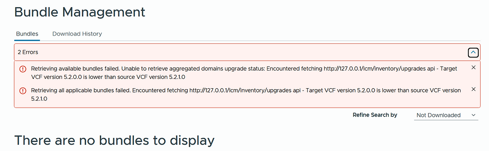 Fixing “VCF Upgrade Bundle Not Visible” Error in Bundle Management (VCF 5.2.1 → 5.2.2)