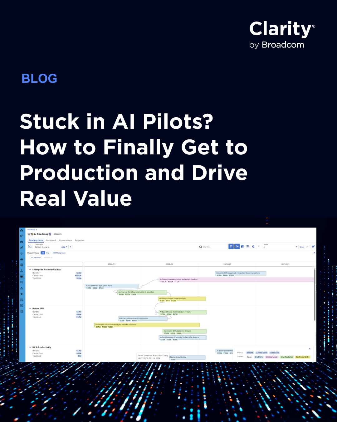 In this blog, Stefania D’Alessandro outlines how Clarity gives CIOs a way out of pilot purgatory. By aligning with Gartner’s AI workstreams, Clarity helps connect strategy to delivery—so AI finally scales with impact.