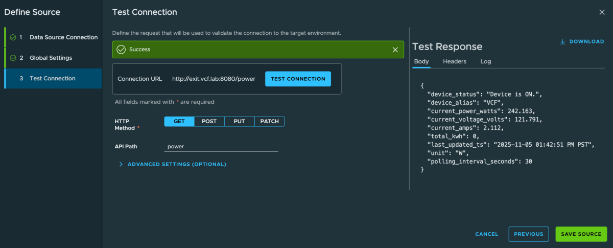 Capturing Kasa Smart Plug Power Metrics using VCF Operations Management Pack Builder