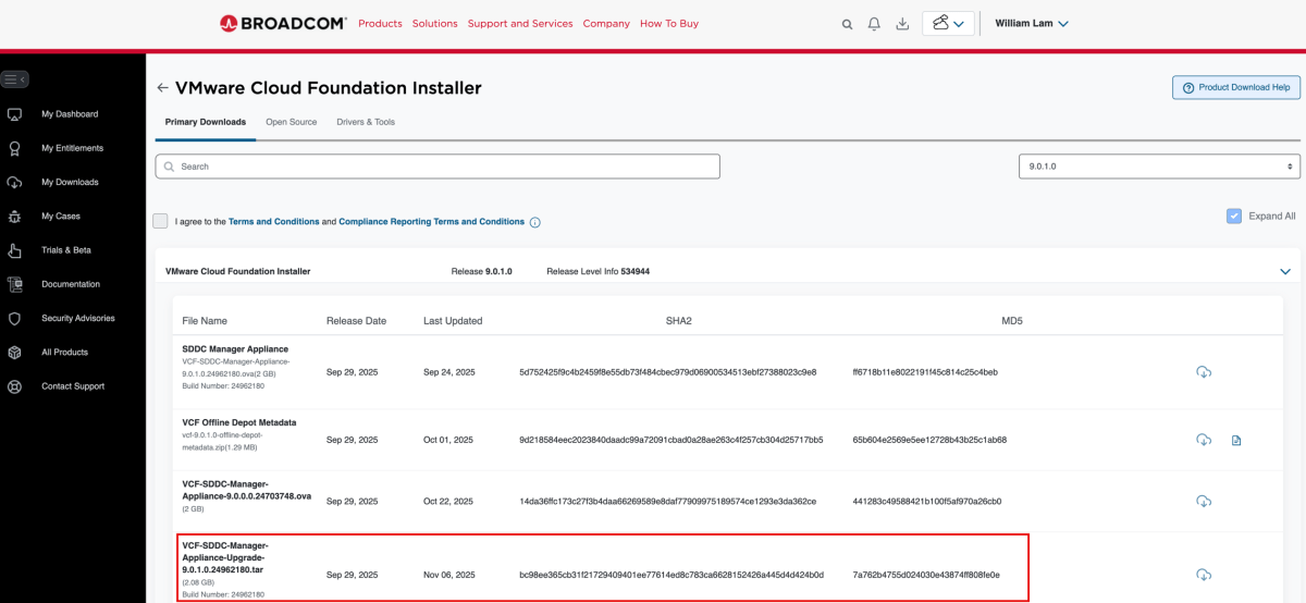 Quick Tip – VCF 9.0.1 upgrade files now available on Broadcom Support Portal (BSP)