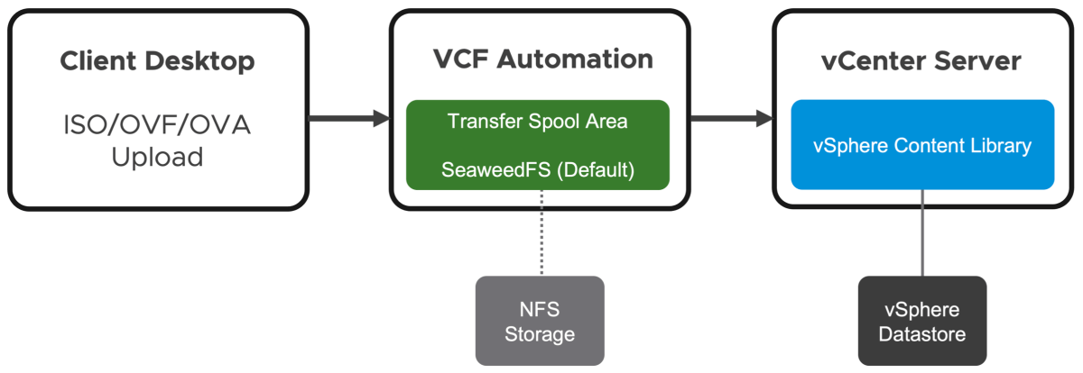 When a user uploads an ISO/OVF/OVA from their desktop to VCF Automation (VCFA) Content Library, the file is temporarily stored in the Transfer Spooling Area (TSA) that resides locally within VCFA before it is finally transferred to the destination vCenter Server. By default, VCFA uses an embed- […]