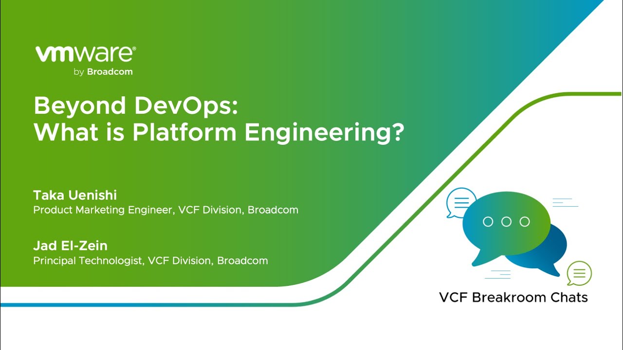 VCF Breakroom Chats Episode 82: What is platform engineering? Learn how platform engineering is the essential operating model for modern and AI-driven applications, emphasizing key outcomes like speed, reliability, and developer happiness.