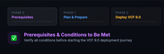 Prerequisites & Conditions to Be Met: Verify all conditions before starting the VCF 9.0 deployment journey; Interactive step-by-step guide to converting your existing vSphere environment into VMware Cloud Foundation 9.0: […]