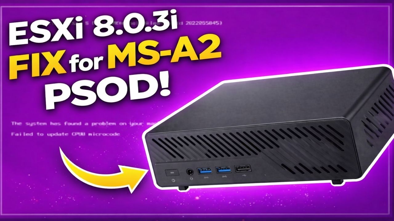 In this video from Hancock’s VMware Half Hour, I walk through how to fix the PSOD (Purple Screen of Death) “Failed to update CPU#0 microcode” error when installing or booting VMware ESXi 8.0 Update 3i (ESXi 8.0.3i) on the Minisforum MS-A2.