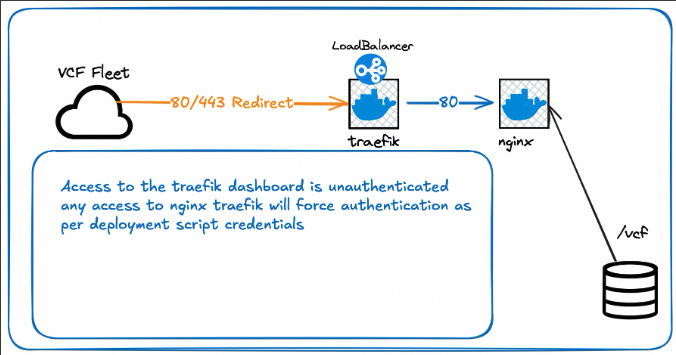 One Bash script turns a fresh Ubuntu VM into a VCF 9 Offline Depot: Traefik, Nginx, basic auth, and Let’s Encrypt wildcard certs via Cloudflare DNS.