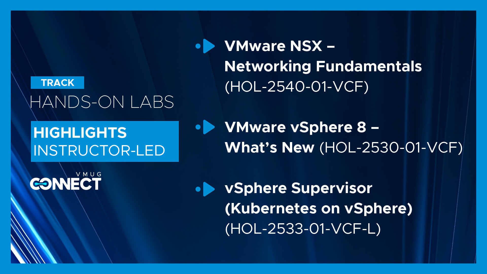 Dive into some awesome instructor-led #HOL this April at #VMUGConnect!Dive into some awesome instructor-led #HOL this...We’re diving into some awesome instructor-led #HOL this April at #VMUGConnect! Have you checked them all out yet? 👀 Explore the full lineup and save your spot now! 👉Broadcom Social Media Advocacy