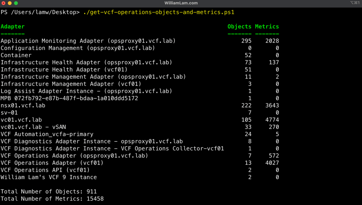 Automating VCF Operations Objects & Metrics ReportingAutomating VCF Operations Objects & Metrics...The number of objects and metrics collected by VCF Operations in VMware Cloud Foundation (VCF) 9.0 plays a critical role in determining the size and scale of your VCF Fleet. Using the VCF Operations UI, you can navigate to Administration->Control Panel->Cluster Management to view... Continue Reading →